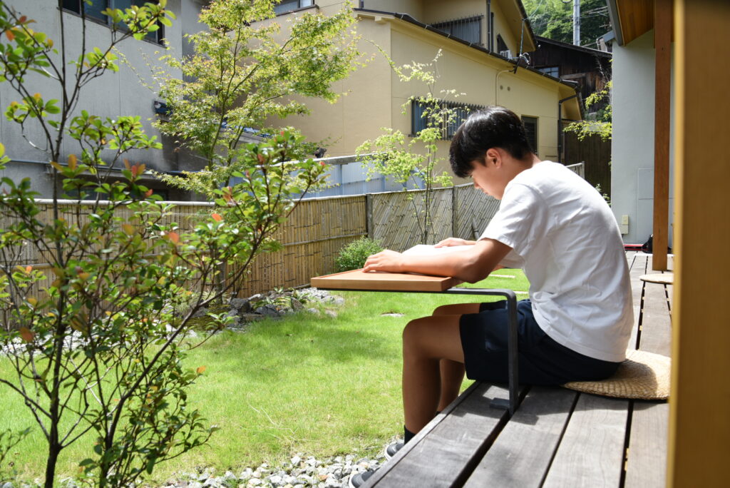 庭を眺めながら、外の風、光、音、匂いを感じながら